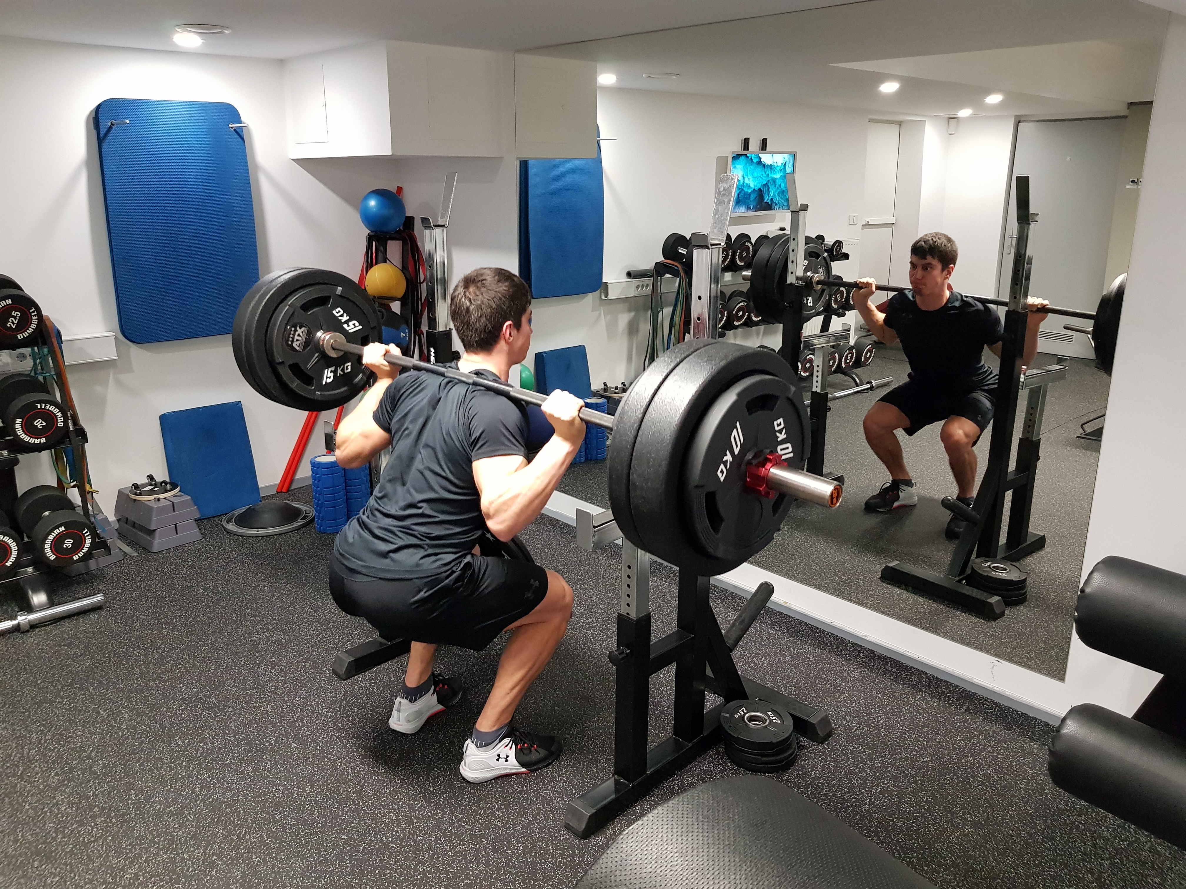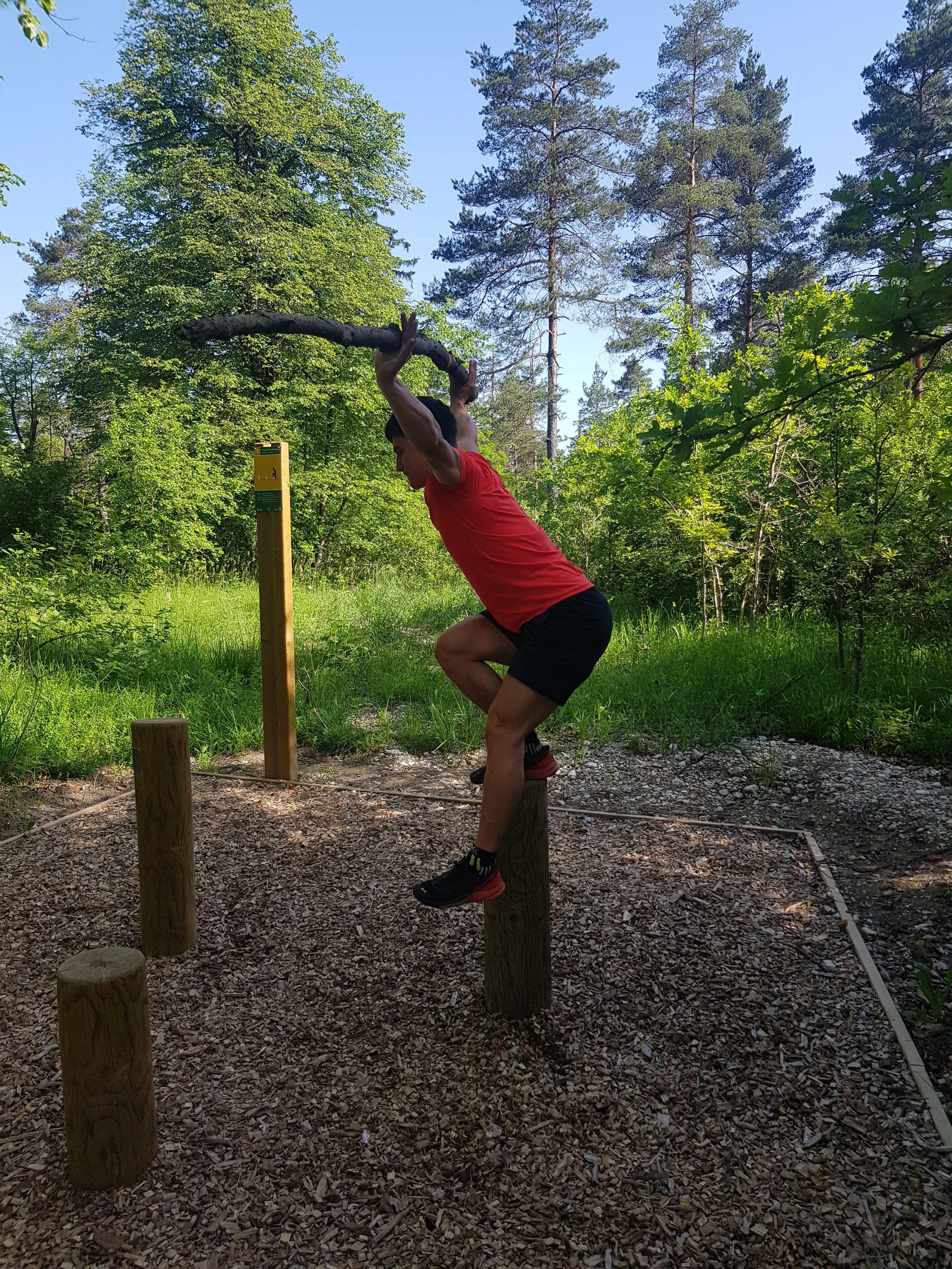 Primer 1: Enonožni počep ali enonožni potisk na preši. SEVEDA priporočamo tudi klasične dvige: počep z drogom in mrtvi dvig